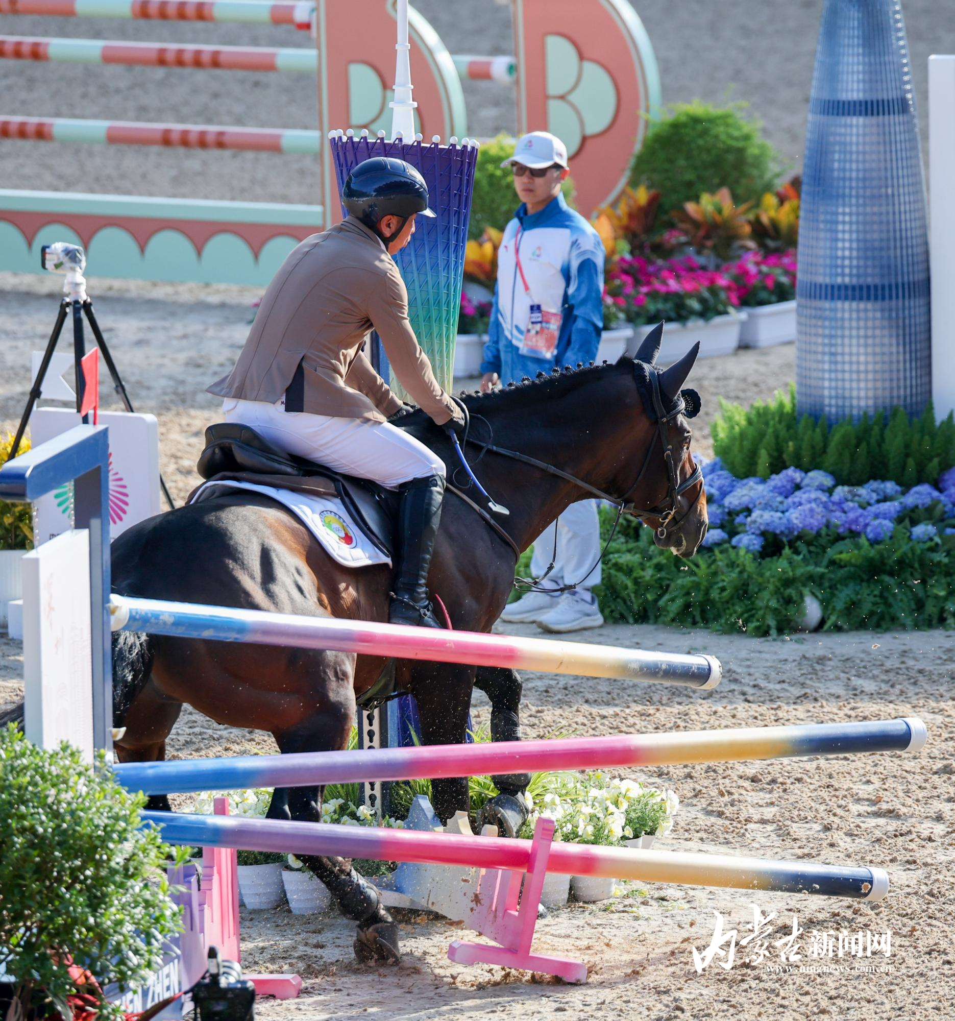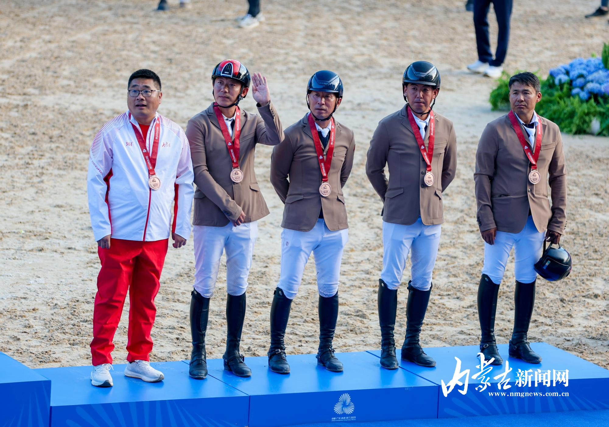 11月17日,第十五屆全國運動會馬術(shù)項目場地障礙團體賽在深圳市光明國際馬術(shù)中心進行,由達日瑪、劉同晏、張睿、韓豐組成的內(nèi)蒙古隊?wèi){借兩輪穩(wěn)定發(fā)揮,以總罰分31分的成績斬獲銅牌。
