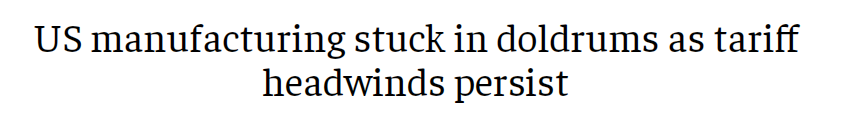 文章還表示,關(guān)稅帶來的不確定性“陰云”不太可能很快消散。美國最高法院大法官上個月對政府關(guān)稅的合法性提出質(zhì)疑,引發(fā)了人們對這些關(guān)稅將被推翻并造成更大混亂的猜測。文章援引桑坦德資本美國資本市場首席經(jīng)濟學(xué)家斯蒂芬·斯坦利(Stephen Stanley)的觀點表示:“(美國)制造業(yè)將繼續(xù)受到難以預(yù)測的關(guān)稅政策的拖累。”