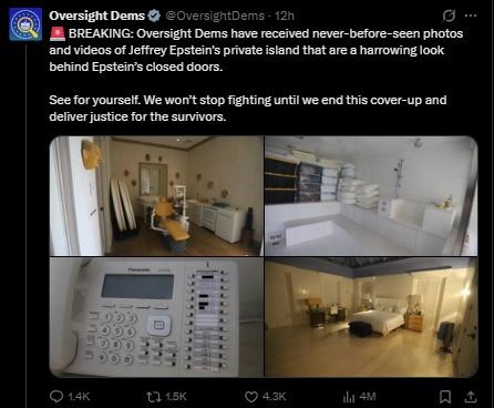據(jù)報道,根據(jù)貼文聲明,視頻拍攝了愛潑斯坦私人島嶼住宅相關(guān)景象。