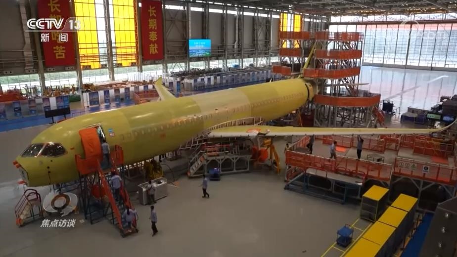 位于上海的中國商飛總裝制造中心,車間里的工人們正在最新一架C919飛機前忙碌著。在過去的2022年,國產(chǎn)大飛機C919取得舉世矚目的成就,獲頒型號合格證,交付全球首家用戶,開啟驗證飛行,踏上了市場化、產(chǎn)業(yè)化發(fā)展的新征程。研制國產(chǎn)大飛機,正是黨中央面向世界科技前沿、面向經(jīng)濟主戰(zhàn)場、面向國家重大需求做出的重大決策。