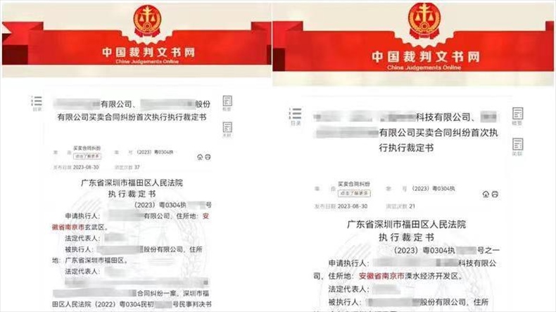 ·深圳市福田區(qū)人民法院的兩份執(zhí)行裁定書將江蘇南京錯(cuò)寫成“安徽省南京市”,已從裁判文書網(wǎng)撤下。