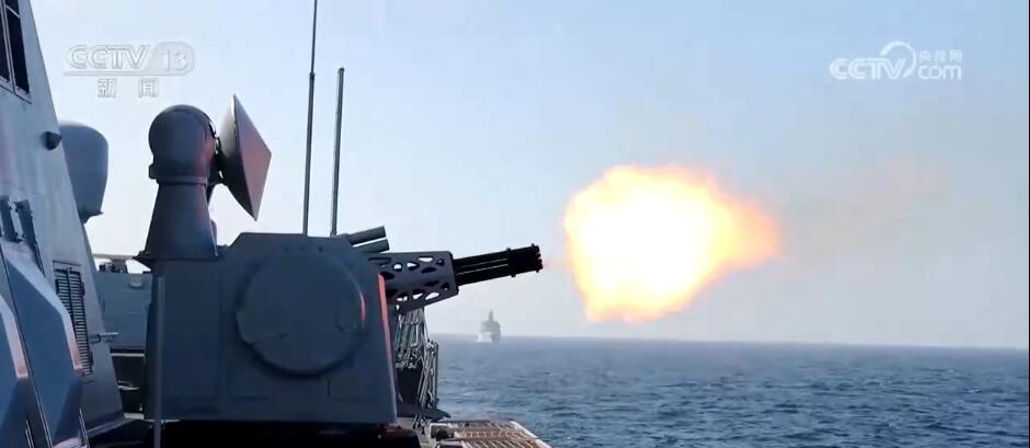 編隊(duì)剛到達(dá)指定海域,“戰(zhàn)斗”隨即打響。指揮員密切關(guān)注戰(zhàn)場態(tài)勢、調(diào)整艦艇航行狀態(tài),隨時(shí)準(zhǔn)備抗擊來襲目標(biāo)?;鹂嘏_(tái)操作手穩(wěn)穩(wěn)握住操作桿,牢牢鎖定目標(biāo)、校正射擊諸元,做好隨時(shí)抗擊準(zhǔn)備。待靶機(jī)進(jìn)入有效射程后,主、副炮接續(xù)開火,成功命中目標(biāo)。