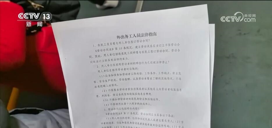 在南昌開(kāi)往成都東、廣州等務(wù)工人員較多的列車(chē)上,鐵路工作人員收集整理了外出務(wù)工法律指南,發(fā)放給有需求的旅客,幫助他們提高維權(quán)意識(shí),保障自身合法權(quán)益。