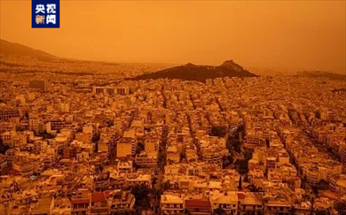 ·希臘雅典遭撒哈拉沙塵侵襲,天空變成橙黃色。