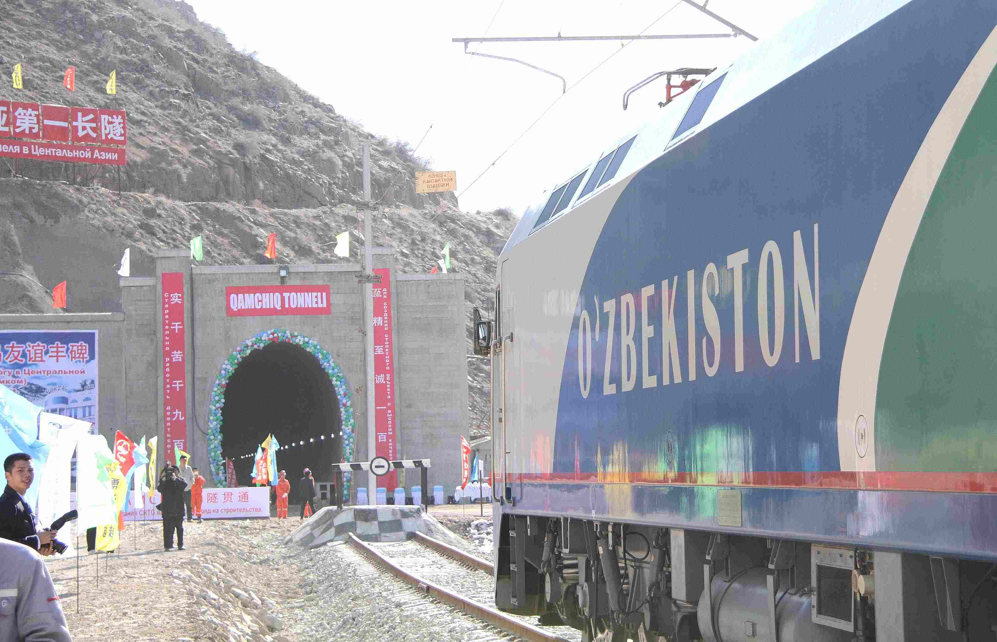 △ 2016年2月27日,一列專列停在烏茲別克斯坦安格連至琶布鐵路甘姆奇克隧道進口。甘姆奇克隧道是中吉烏鐵路的重要一環(huán),對促進烏茲別克斯坦經(jīng)濟社會發(fā)展和共建“一帶一路”倡議的實施具有重大意義。