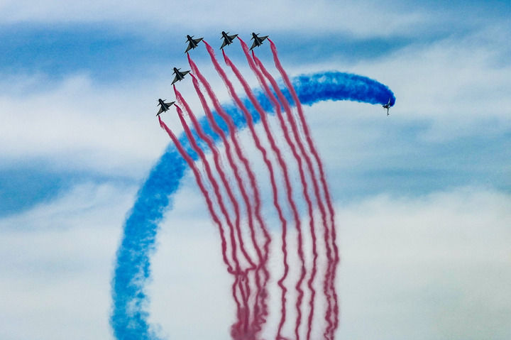 ↑9月19日,空軍八一飛行表演隊進行飛行表演。新華社記者 顏麟蘊 攝