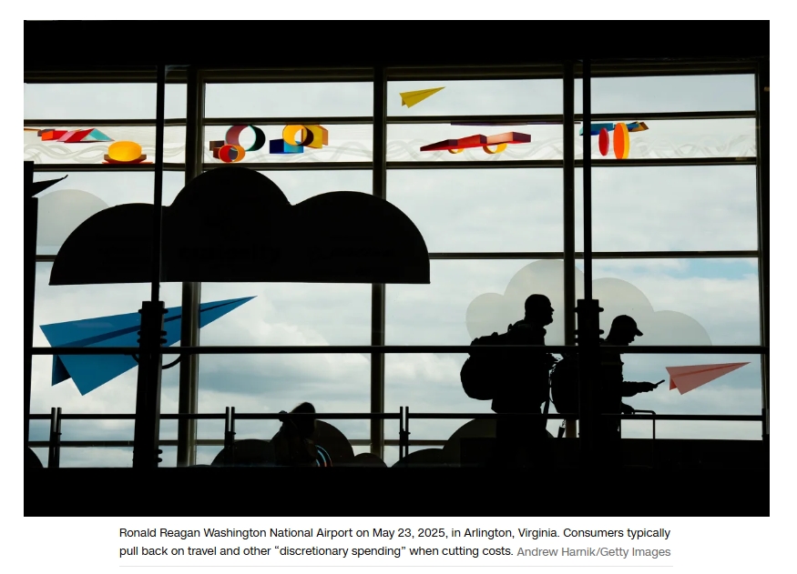 對于像威爾伯恩這樣的家庭來說,春季的瘋狂消費是對抗不確定性的“豪賭”,可能需要多年的精打細算來償還債務(wù)。如今背負新債的美國人正縮減消費,尤其是餐飲、旅行等非必需支出。美國金融服務(wù)網(wǎng)站銀率網(wǎng)(Bankrate)的調(diào)查顯示,54%的美國成年人計劃減少此類消費,高于去年的49%。商務(wù)部數(shù)據(jù)也印證了這一情況,五月份餐館和酒吧的零售支出下降了0.9%,這是自二月以來的首次月度下降,也是自2023年2月以來的最大降幅。