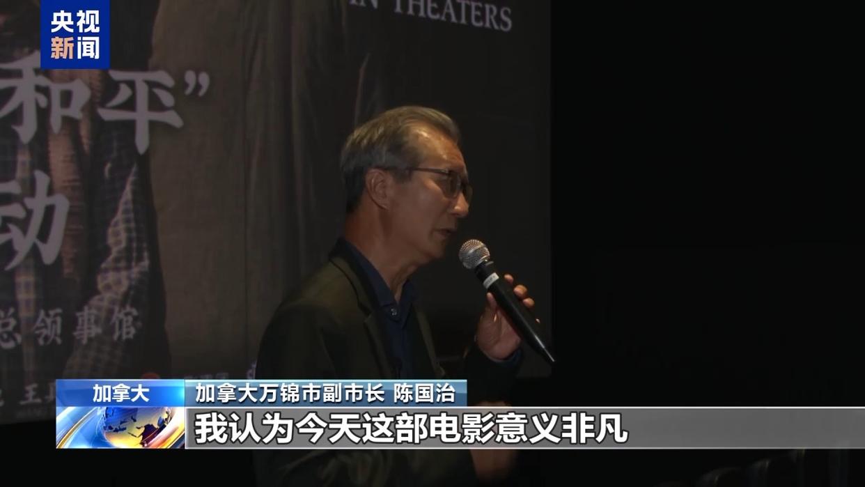 中國駐溫哥華代總領(lǐng)事曾智也出席了首映式。曾智強(qiáng)調(diào),牢記歷史的經(jīng)驗和教訓(xùn),絕不是為了延續(xù)仇恨,而是為了以史為鑒,尊重歷史,維護(hù)和平。曾智表示,中加兩國在二戰(zhàn)期間曾經(jīng)在東方戰(zhàn)場并肩攜手作戰(zhàn),真誠希望與領(lǐng)區(qū)各界一道,銘記歷史,珍愛和平,緬懷先烈,開創(chuàng)未來,共同秉持正確的二戰(zhàn)史觀,共同維護(hù)戰(zhàn)后的國際秩序,捍衛(wèi)國際的公平正義,為人類的和平與發(fā)展,共同譜寫新的篇章。