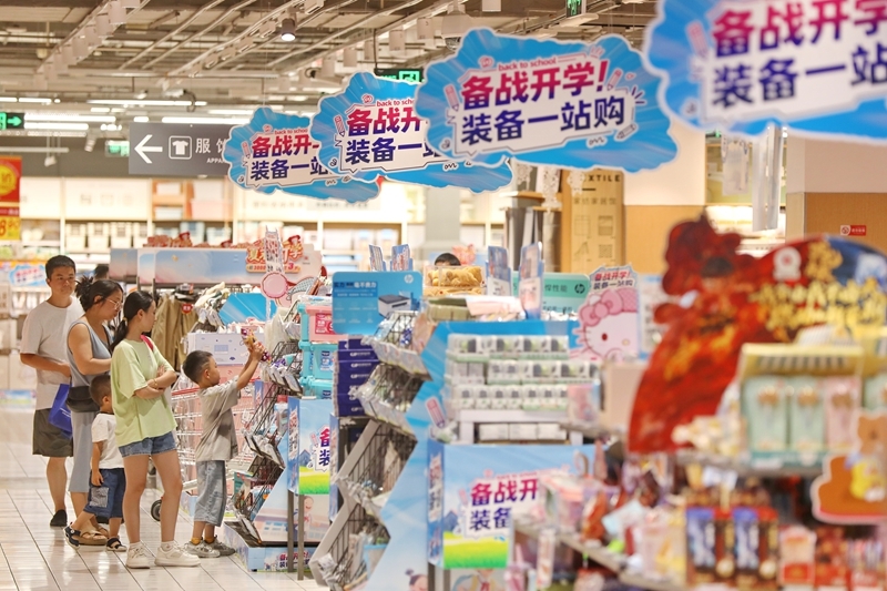 8月24日,在浙江省嘉興市南湖區(qū)一家商場,家長帶著孩子選購學(xué)習(xí)用品。