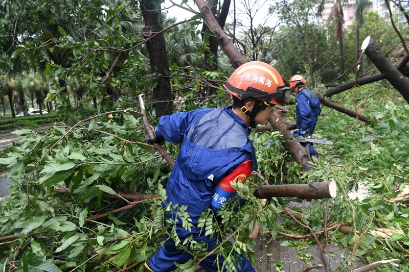 為應(yīng)對臺風“劍魚”影響,海南省三亞市組織救援人員開展清障、供水、供電、救援等災后修復工作,保障經(jīng)濟社會運行和群眾生活恢復。