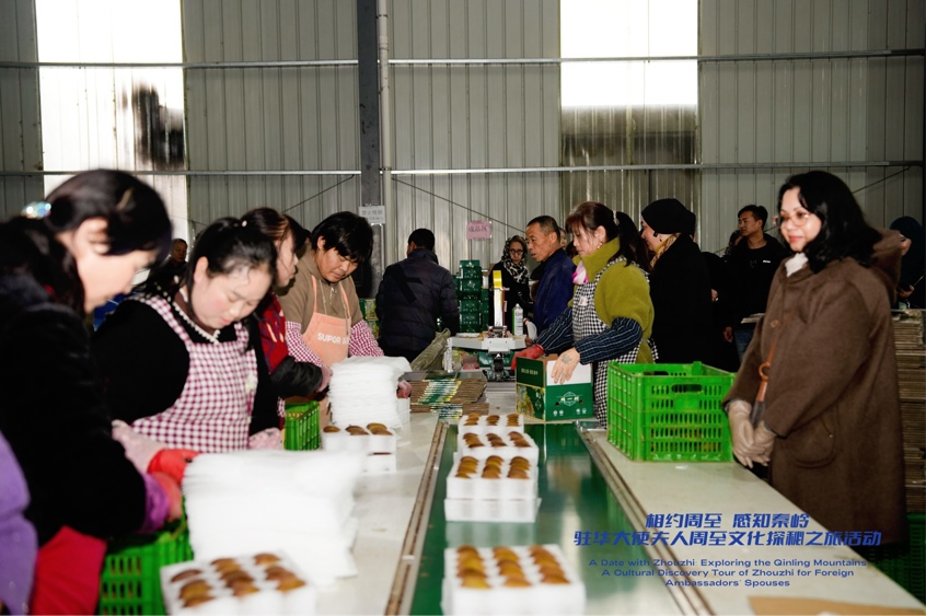 駐華大使夫人品嘗著不同品種的獼猴桃以及各式各樣的獼猴桃深加工食品,紛紛稱贊其細膩的口感、獨特的風味和濃郁的果香?!斑@不僅是一次味覺的享受,更是一次對中國鄉(xiāng)村產(chǎn)業(yè)振興的直觀感受?!蹦β甯珩v華大使夫人表示,“我非常期待后續(xù)可以和周至合作,因為摩洛哥很喜歡這種水果,我也希望可以在這里學到一些產(chǎn)業(yè)發(fā)展的知識,并把這些知識帶回我們國家?!?/p>
