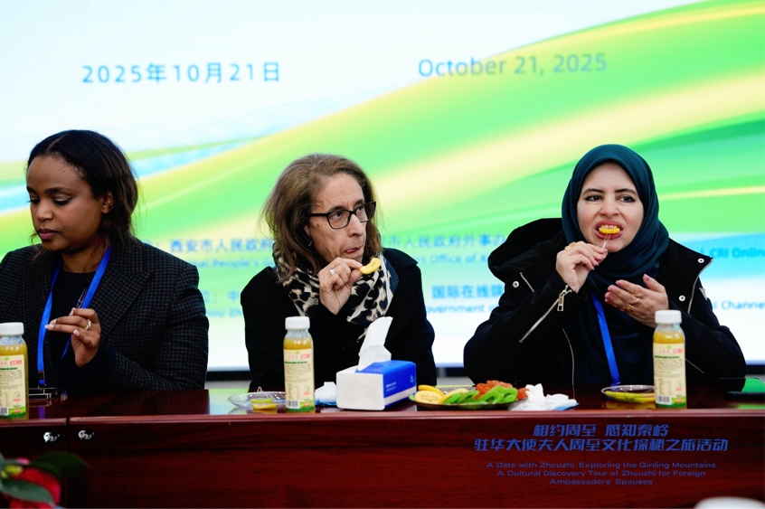 10月21日,秋光漫過秦嶺北麓的田野,來自土庫曼斯坦、約旦、巴林、科摩羅、也門、薩摩亞、馬耳他、埃塞俄比亞、土耳其、比利時、摩洛哥、孟加拉國、烏茲別克斯坦等13個國家的駐華大使夫人,走進西安市周至縣周一村獼猴桃產(chǎn)業(yè)基地。這片被秦嶺滋養(yǎng)的土地,不僅是秦嶺生態(tài)饋贈的“甜蜜樣本”,更成為大使夫人們探尋中國鄉(xiāng)村產(chǎn)業(yè)振興路徑、觸摸“一帶一路”農(nóng)業(yè)合作潛力的鮮活載體。
