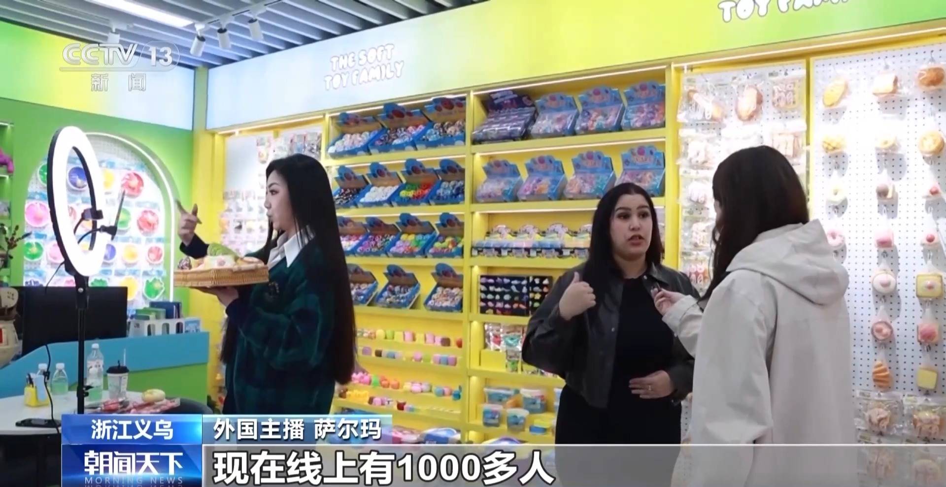 外國主播 薩爾瑪:生意很棒,現(xiàn)在線上有1000多人,過去1個小時(shí)我們賣出了500多個訂單。我是走播,一家一家地推廣產(chǎn)品。義烏的產(chǎn)品非常受歡迎,大家都喜歡這里的品質(zhì)和價(jià)格。
