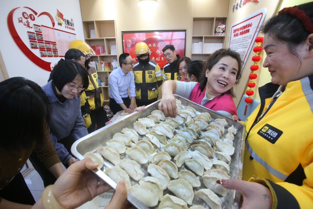 天津工會組織舉辦新就業(yè)形態(tài)勞動者慰問活動。新華社發(fā)