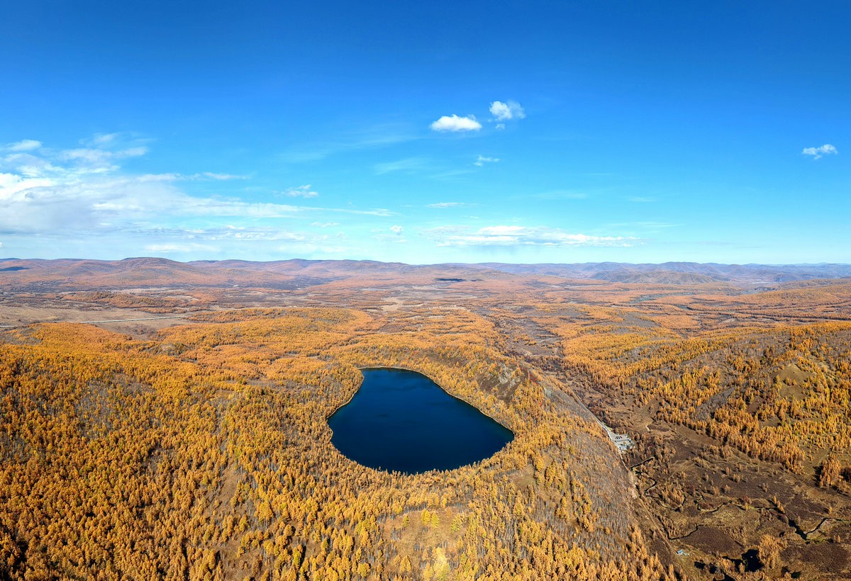 阿爾山,全稱“哈倫—阿爾山”,系蒙古語,意為熱的圣水。阿爾山地處內(nèi)蒙古興安盟、大興安嶺西南麓,有著“濃縮的自然博物館”之譽——草原、森林、溫泉、火山遺跡在此共生,四季皆美,而最迷人的,當屬秋日那抹獨有的“金漸層”,泛黃的落葉松、火紅的楓葉、翠綠的松柏,高空俯瞰,滿目詩意。
