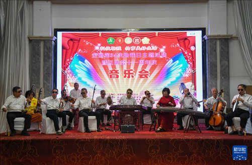 5月13日,“自強(qiáng)不息藝術(shù)團(tuán)盲人樂隊”成員在周年慶上演出。新華社記者 胥冰潔 攝
