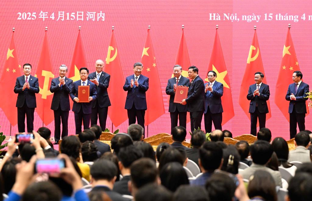 會(huì)談后,兩黨總書(shū)記共同見(jiàn)證中越雙方簽署的45份雙邊合作文本展示,涵蓋互聯(lián)互通、人工智能、海關(guān)檢驗(yàn)檢疫、農(nóng)產(chǎn)品貿(mào)易、文化和體育、民生、人力資源開(kāi)發(fā)、媒體等領(lǐng)域。