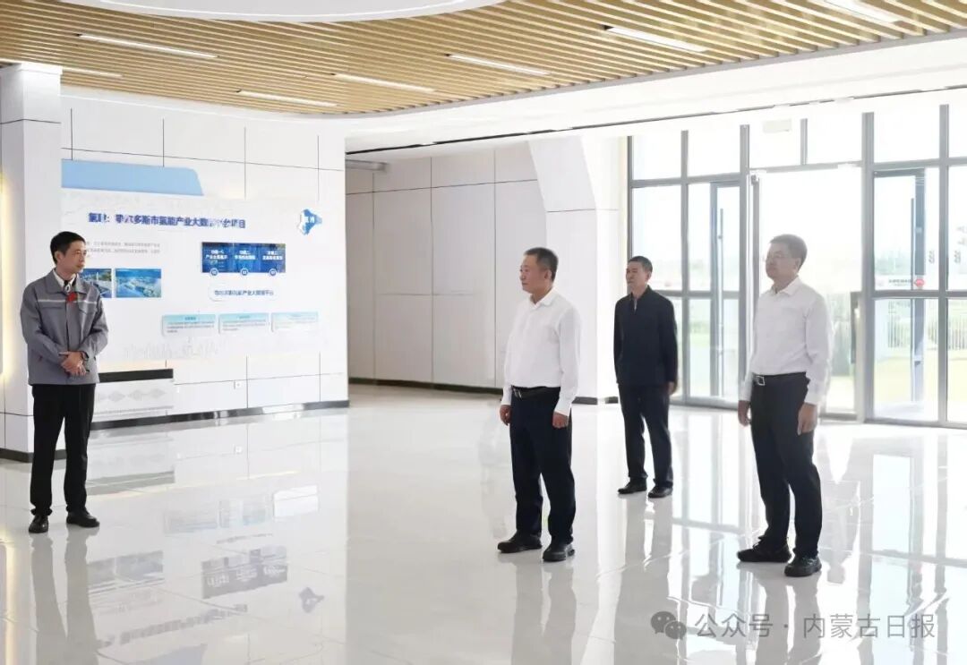 9月15日,自治區(qū)黨委書(shū)記孫紹騁走進(jìn)鄂爾多斯新能源研究院,認(rèn)真了解制氫儲(chǔ)氫有關(guān)技術(shù)創(chuàng)新、產(chǎn)品研發(fā)、場(chǎng)景應(yīng)用等情況。草原云·內(nèi)蒙古新聞網(wǎng)記者 馬建兵