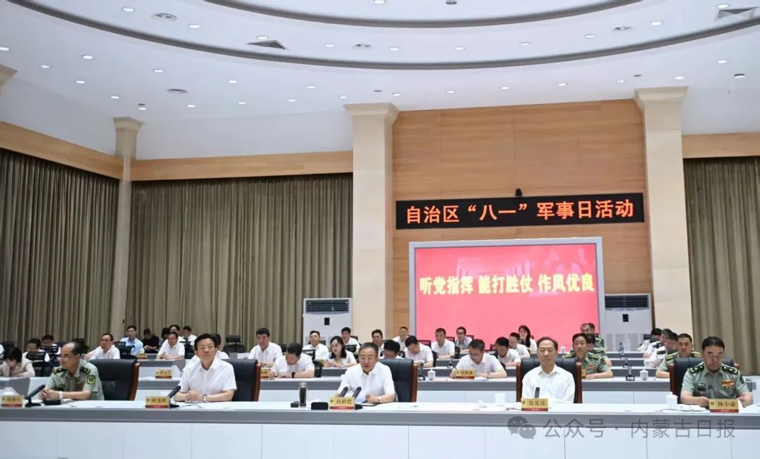 “八一”建軍節(jié)來(lái)臨之際,7月21日,自治區(qū)黨委書記、內(nèi)蒙古軍區(qū)黨委第一書記孫紹騁,自治區(qū)政協(xié)主席張延昆等自治區(qū)省軍級(jí)領(lǐng)導(dǎo)同志集體參加國(guó)防動(dòng)員能力建設(shè)成果展示活動(dòng)暨“八一”軍事日活動(dòng)。孫紹騁代表自治區(qū)黨委和政府,向駐區(qū)廣大解放軍指戰(zhàn)員、武警部隊(duì)官兵、軍隊(duì)文職人員以及民兵預(yù)備役人員、退役軍人致以節(jié)日祝賀,向廣大應(yīng)急救援人員致以誠(chéng)摯問(wèn)候。